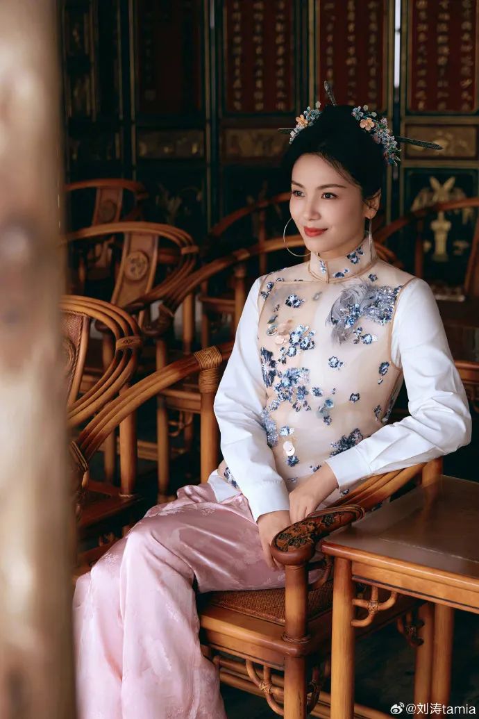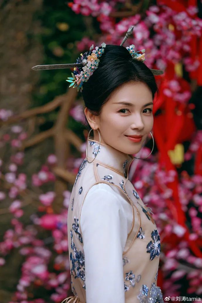 刘涛分享了一组头戴 “三条簪” 的照片