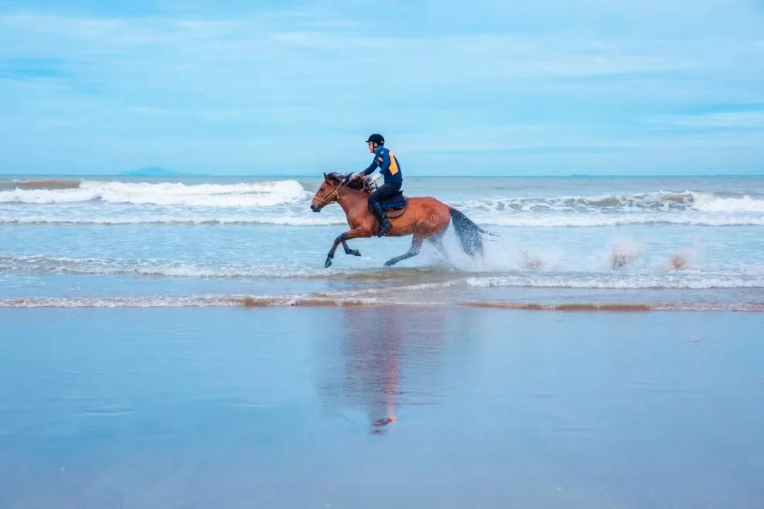 南澳沙滩平坦开阔,随处可见海浪带来的贝壳、海螺。在这里可以纵马奔驰、追风踏浪,感受海风拂面的畅快。