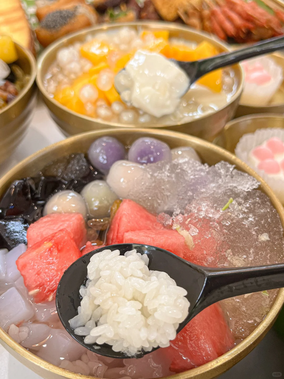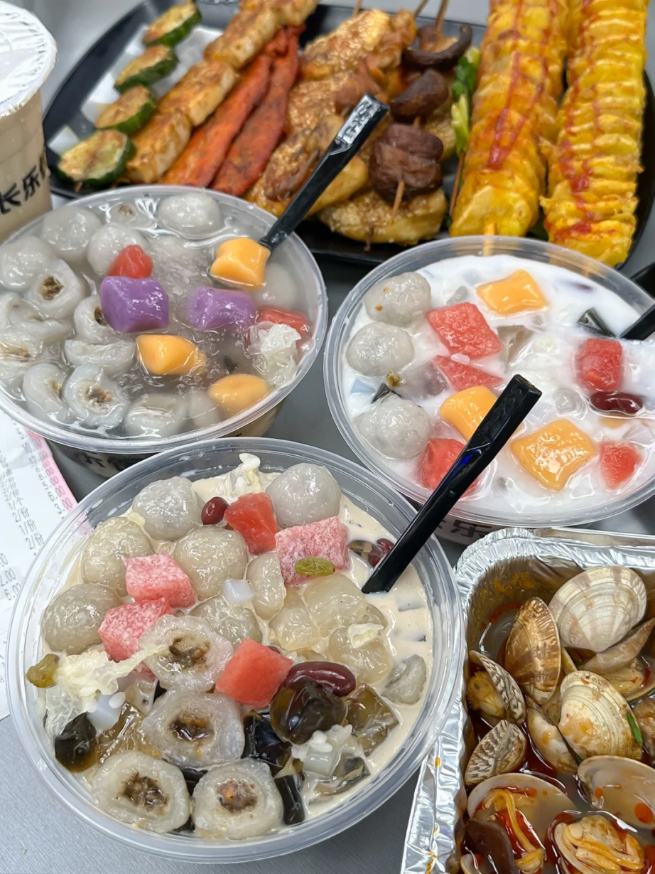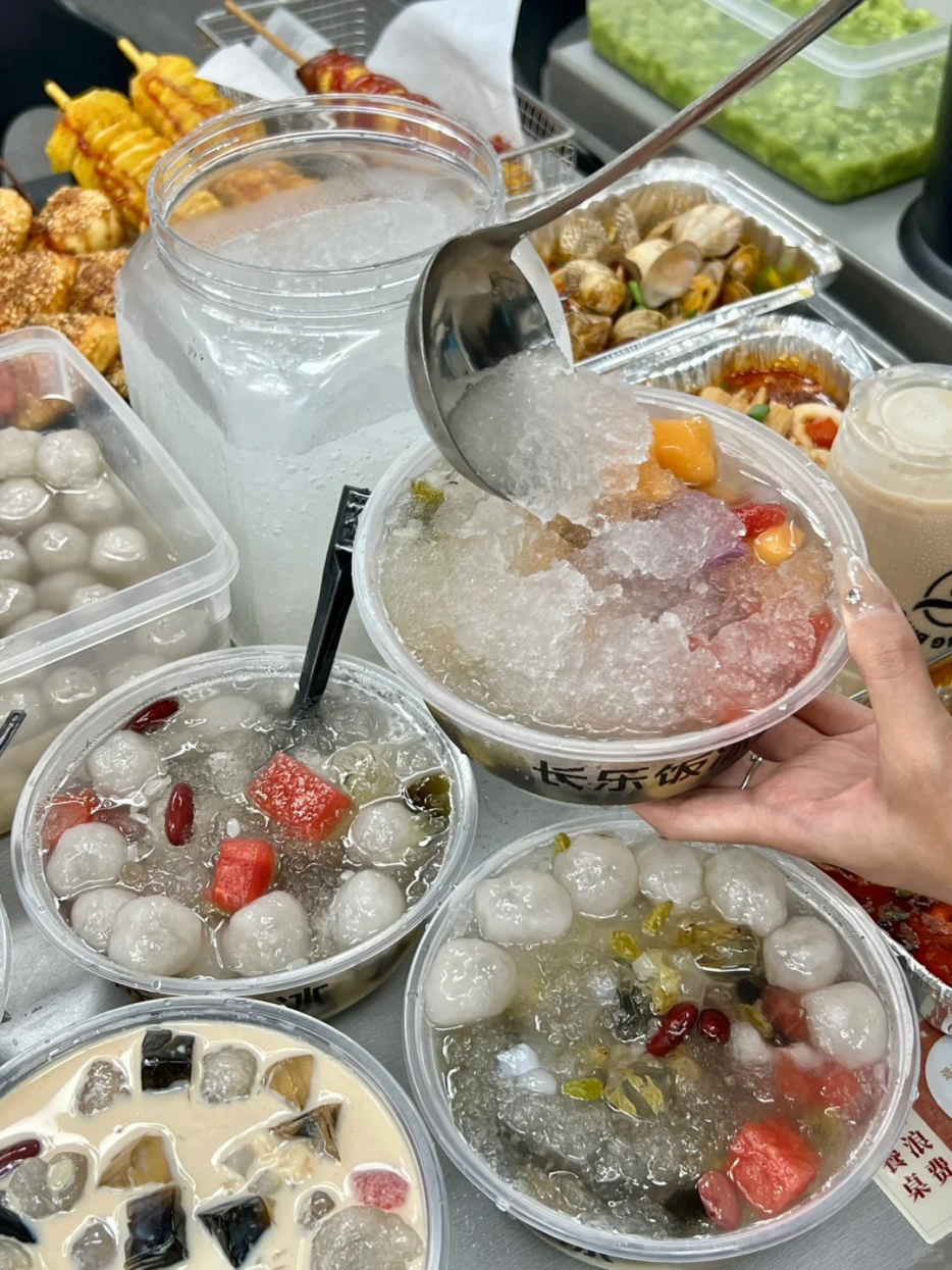 长乐冰饭由传统解暑饮料“冰水”演变而来,里面有糯米、碎冰、水果、葡萄干、银耳、红枣片、椰果等丰富食材任你挑选,既能解暑又能饱腹。