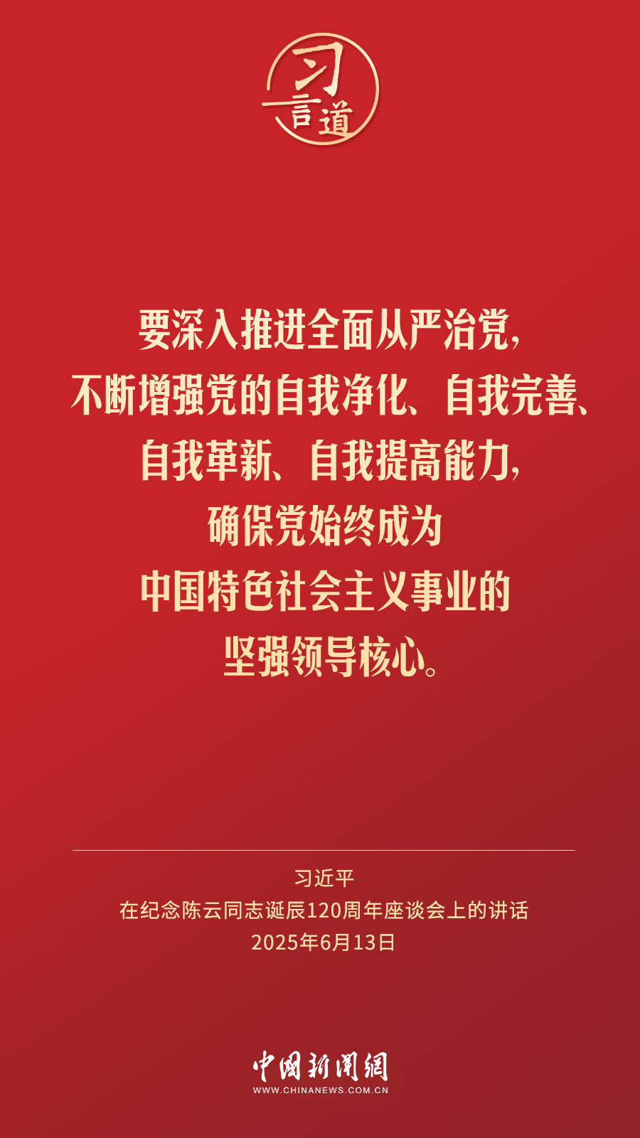 中共中央13日在人民大会堂举行座谈会,纪念陈云同志诞辰120周年。中共中央总书记、国家主席、中央军委主席习近平发表重要讲话强调——