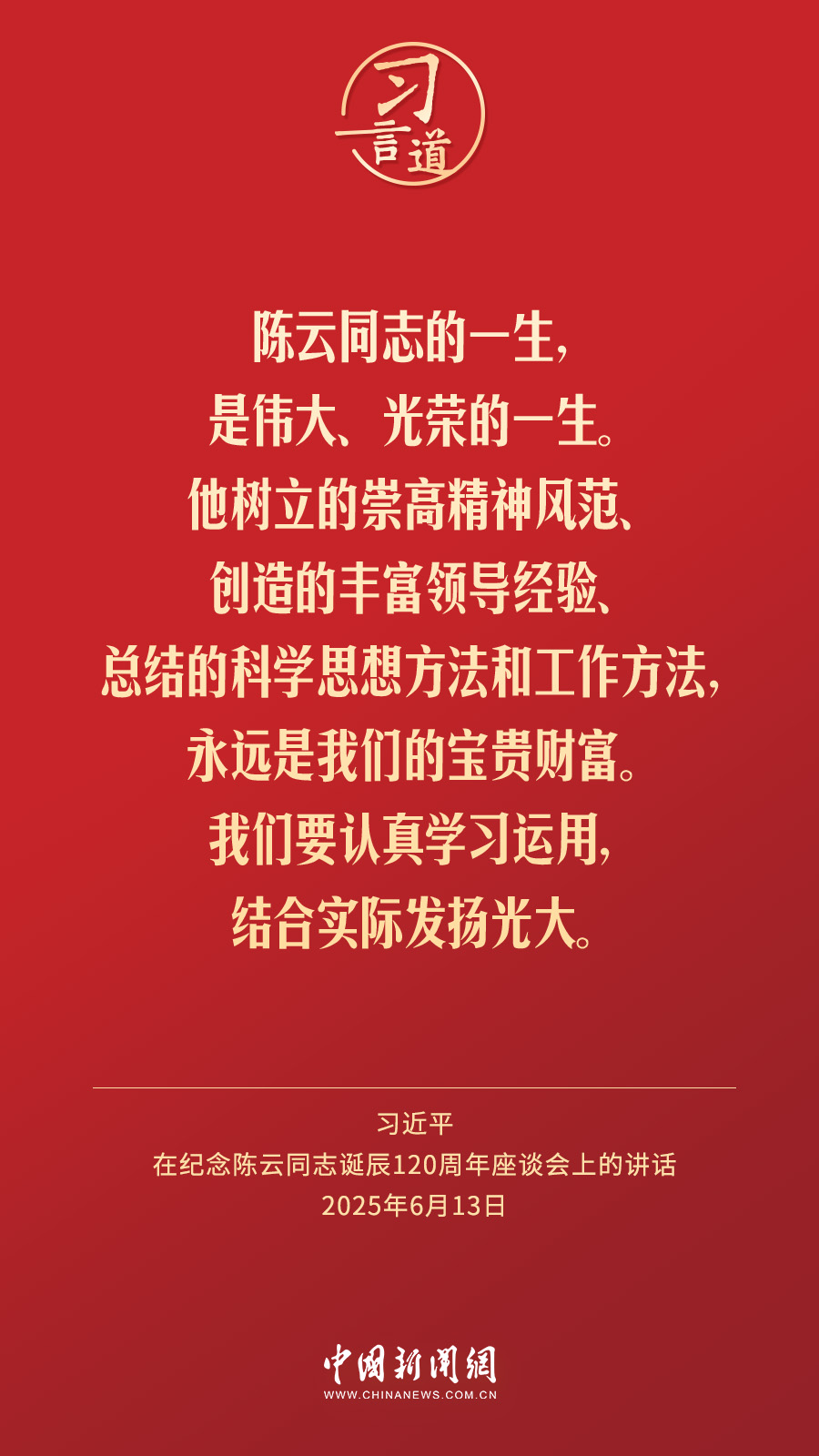 - 中共中央举行纪念陈云同志诞辰120周年座谈会 习近平发表重要讲话(2025-06-13 16:51:22)
