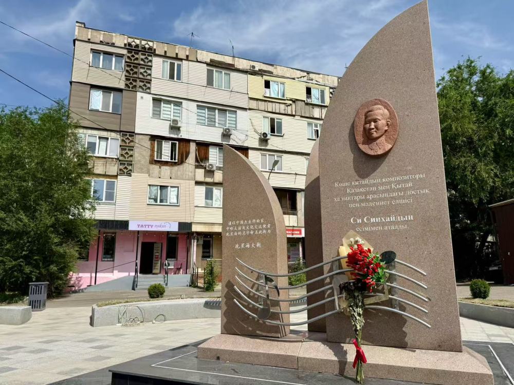 6月10日,在阿拉木图拍摄的冼星海纪念碑。新华社记者 郑开君 摄