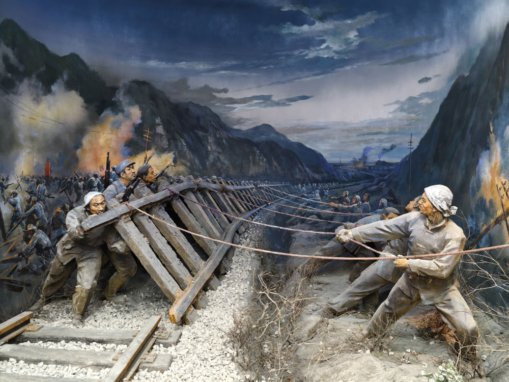 这是八路军和民兵破袭正太铁路(中国照片档案馆馆藏)。