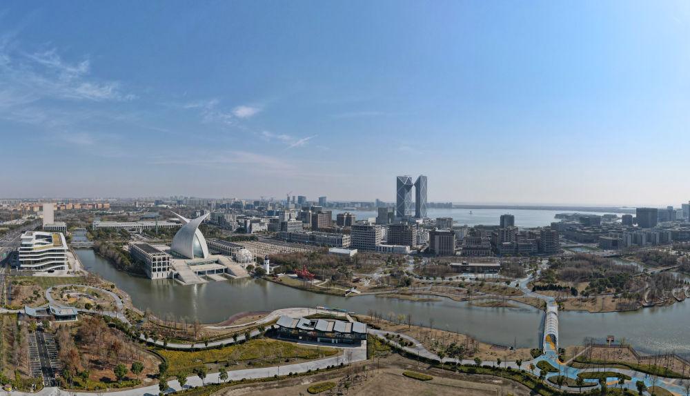 这是2025年3月19日拍摄的上海自贸试验区临港新片区滴水湖畔景色(无人机照片)。新华社记者 方喆 摄