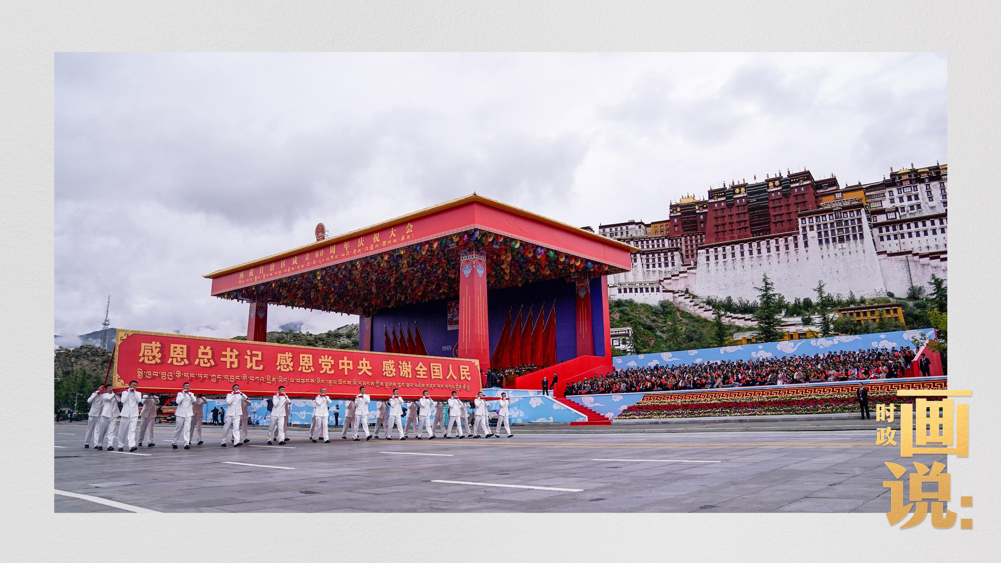 21日上午,习近平总书记在拉萨市布达拉宫广场出席西藏自治区成立60周年庆祝大会,同西藏各族各界干部群众约2万人共同欢聚,热烈庆祝西藏自治区成立60周年。
