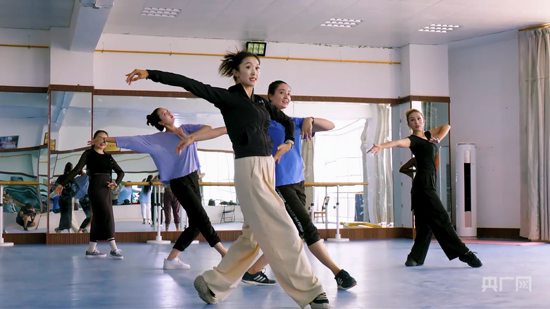 图尔荪阿依·萨拉马提正进行《玛纳斯》歌舞剧排练(央广网发 谢智 摄)