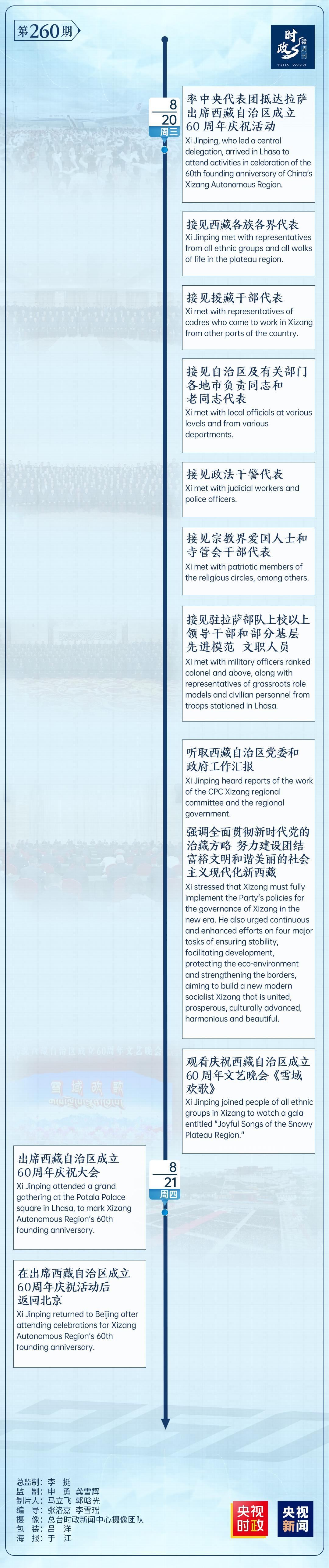 - “共建中华民族共同体 书写美丽西藏新篇章”——习近平总书记率中央代表团出席西藏自治区成立六十周年庆祝活动纪实(2025-08-24 11:45:00)