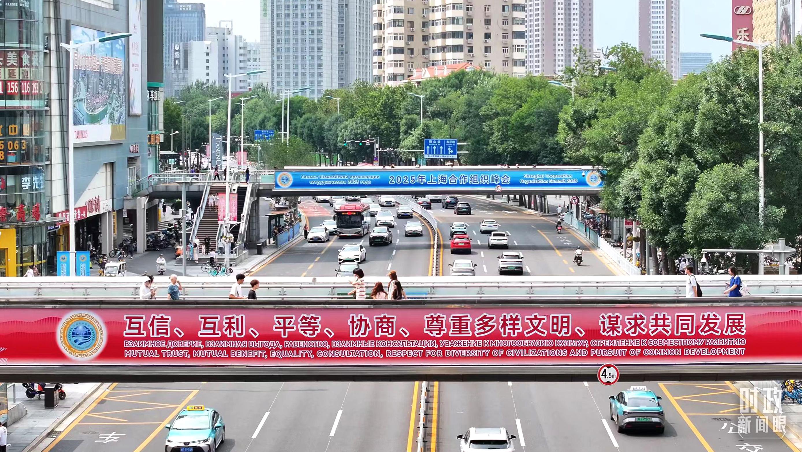 △天津街头的上合组织标语。(总台记者孙强拍摄)