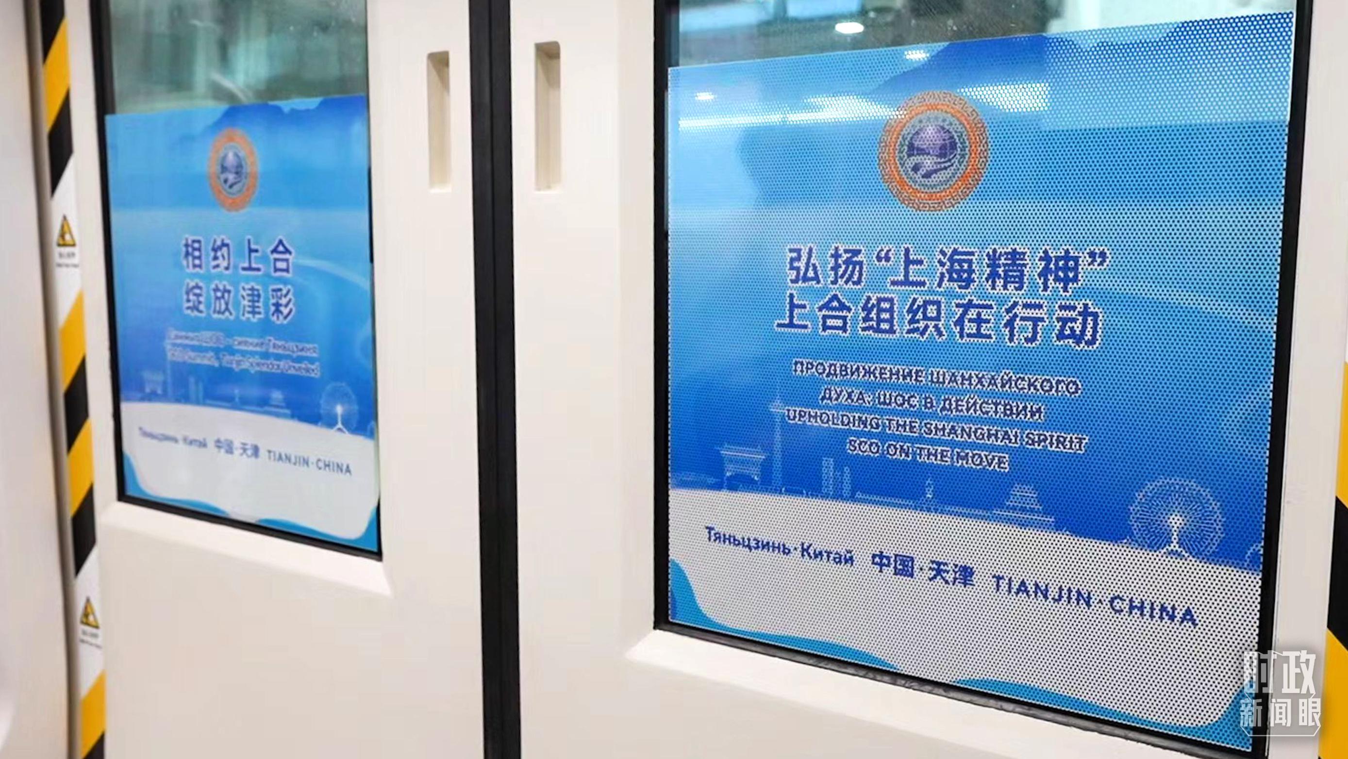 △天津地铁上的上合组织标语。(总台记者孙强拍摄)