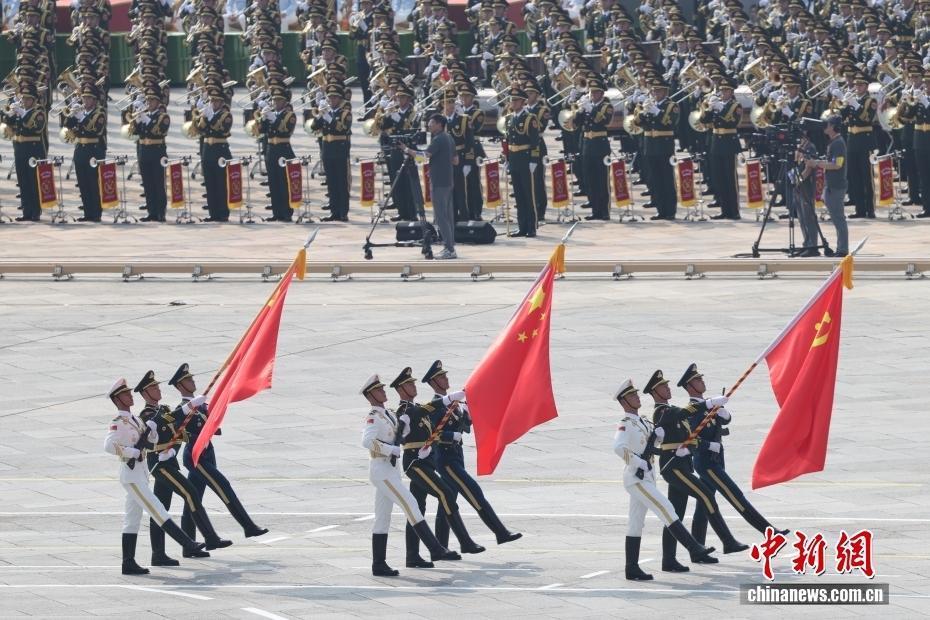 图为中国人民解放军仪仗方队接受检阅。中新社记者 盛佳鹏 摄