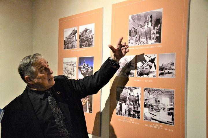2025年6月24日,美中航空遗产基金会主席杰弗里·格林在位于福州市的福建博物院参观“铭记英雄——飞虎队主题历史图片展”。新华社记者 李昊泽 摄