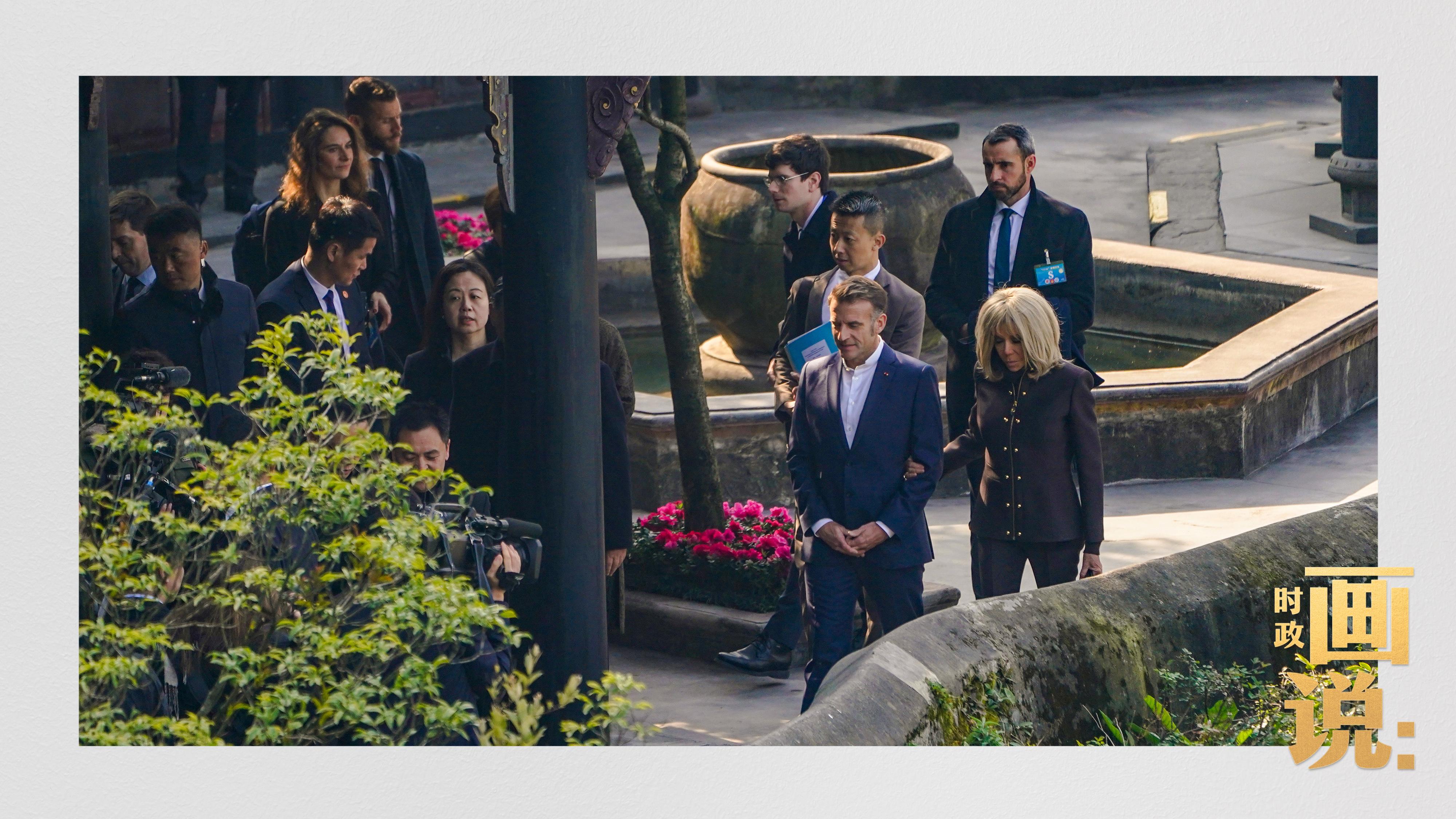 △习近平和夫人彭丽媛同马克龙夫妇在都江堰进行友好交流
