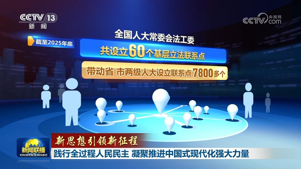 截至2025年底,全国人大常委会法工委共设立60个基层立法联系点,带动省、市两级人大设立联系点7800多个;2025年,1400余名政协委员反映社情民意信息1.2万余篇……各类反映基层民情民意的直通快车,成为密切联系群众的桥梁纽带。