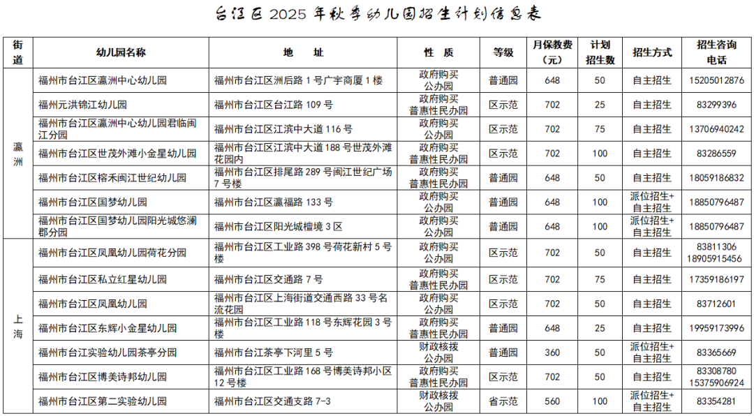 近日,福州市台江区人民政府发布福州市台江区教育局2025年秋季幼儿园招生工作方案。