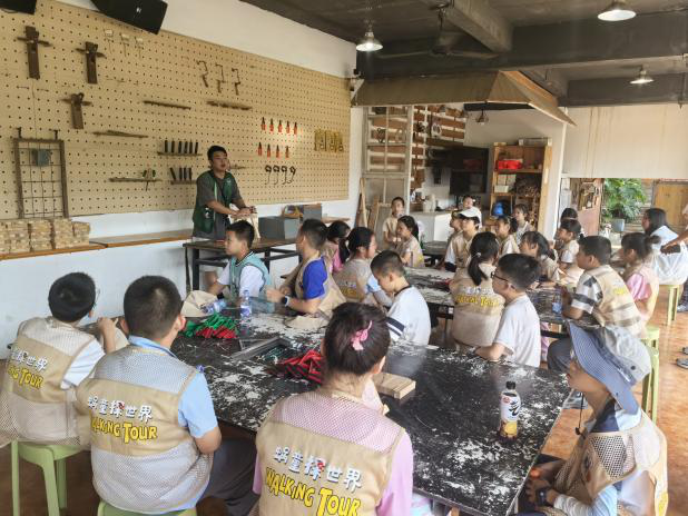 在相思岭研学农场,孩子们通过实地参观,学习各种木料知识,了解古人智慧结晶“榫卯”结构,并亲自动手制作属于自己的小木凳。随后,他们深入田园林间,采摘农作物,与大自然亲密相拥。
