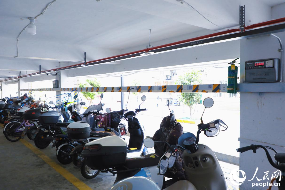 利嘉城社区新建的电动车集中充电桩。人民网 李唯一 摄