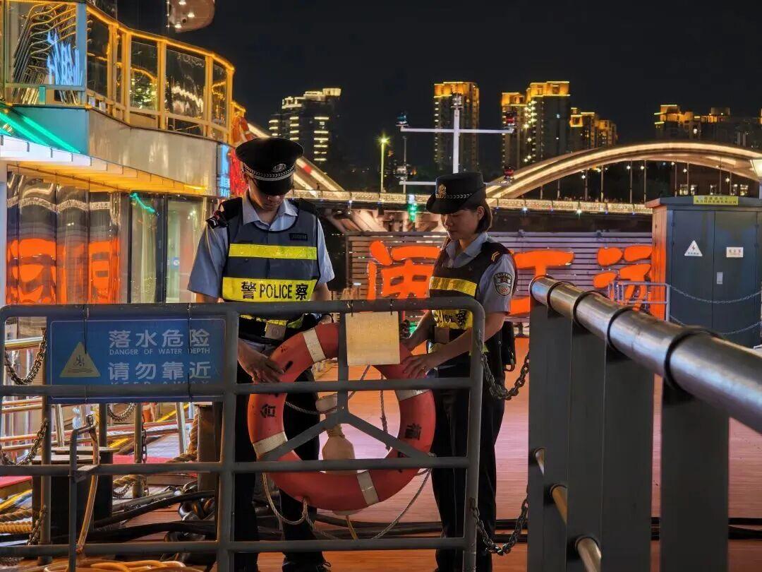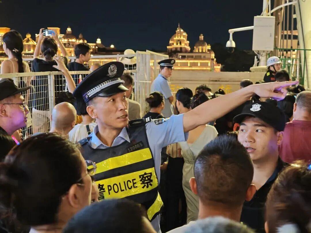 “虽然人山人海,但秩序井然,离不开民警的辛勤工作。”市民郑女士对着执勤民警夸赞道。当最后一组光影在夜空消散,游客们伴着江风渐渐散去,执勤民警们仍在忙着梳理当天的情况:确认是否有游客遗落物品、协助交警疏导最后一波车流、跟群防志愿者交接次日的配合事项。月光洒在他们的警徽上,与闽江的灯火相映成趣。