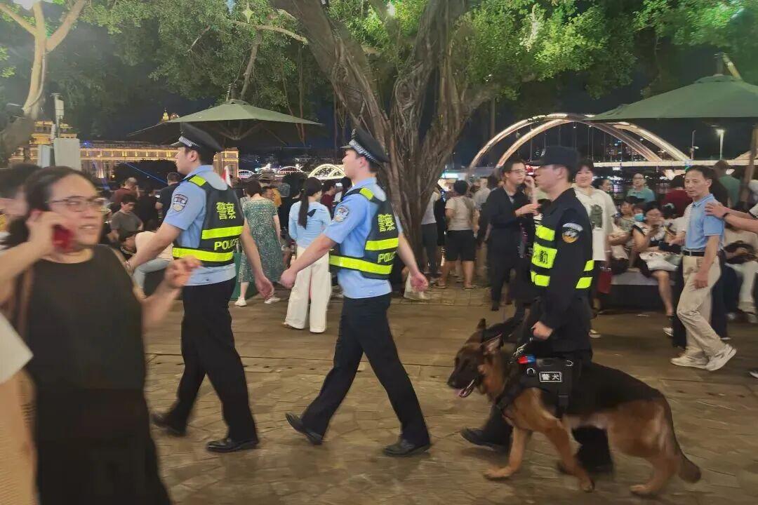 他们还联动沿街商户、景区保安组建“群防志愿队”:奶茶店老板帮忙提醒游客看管好随身物品,便利店店员为需要的游客指引卫生间方向,保安师傅协助疏导非机动车,形成“民警为主、群众为辅”的守护合力。