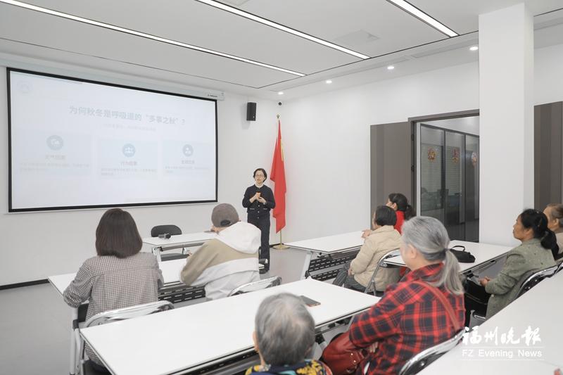 秋冬是呼吸道疾病多发之季,免疫力低下的老年人尤其需要警惕。10日下午,由市计生协主办的福州市2025年“健康知识进万家”健康科普宣传活动在台江区瀛东社区举办。来自福州肺科(胸科)医院呼吸与危重症医学科的张宏英主任医师面向老年群体,详解了相关预防与应对措施。
