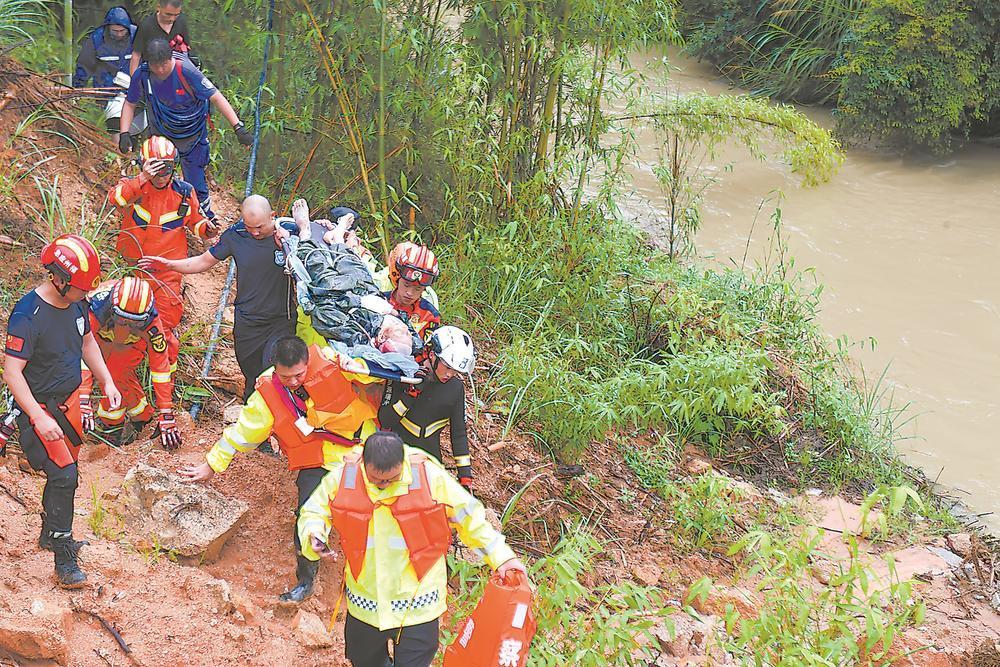 11时许,随着暴雨渐停,赵兴锦终于被抬上救护车。“患者头部有创伤,肋骨疑似骨折,目前生命体征平稳。”赶往医院途中,随车医生为赵兴锦做了初步检查。